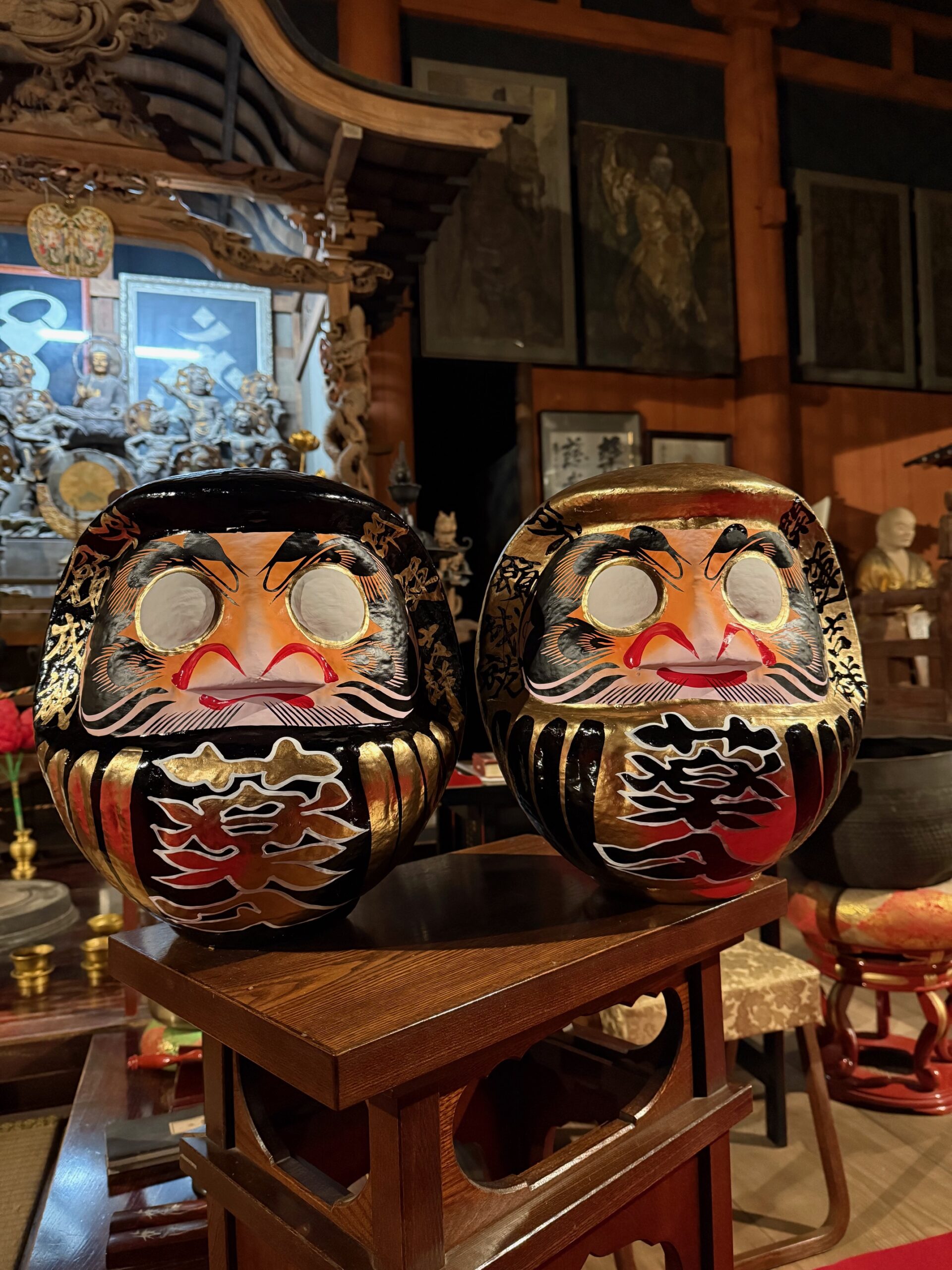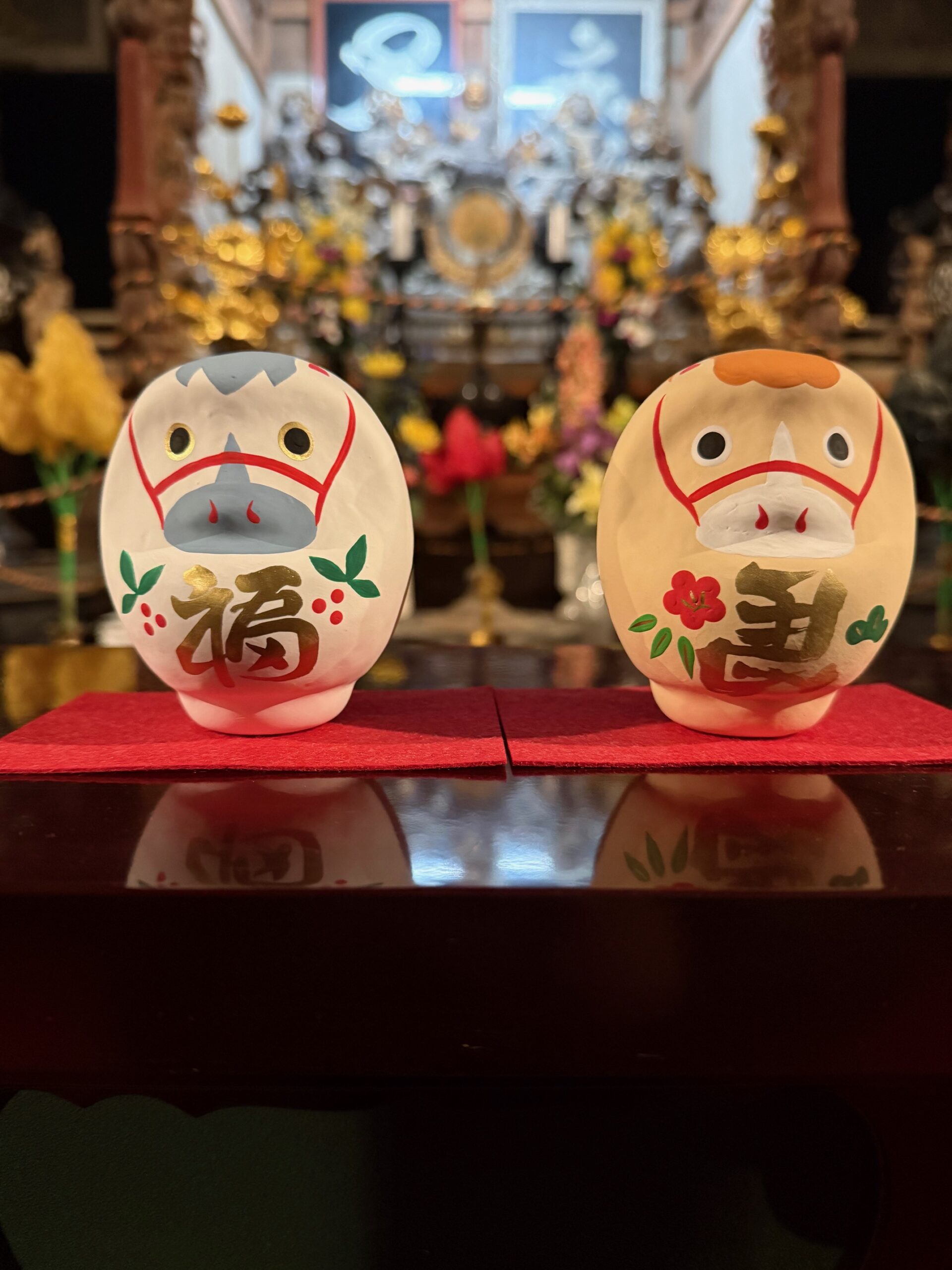今年もご用意できました。日向薬師特別オリジナルのダルマになります。色は黒と金。合計で30体限定となります。