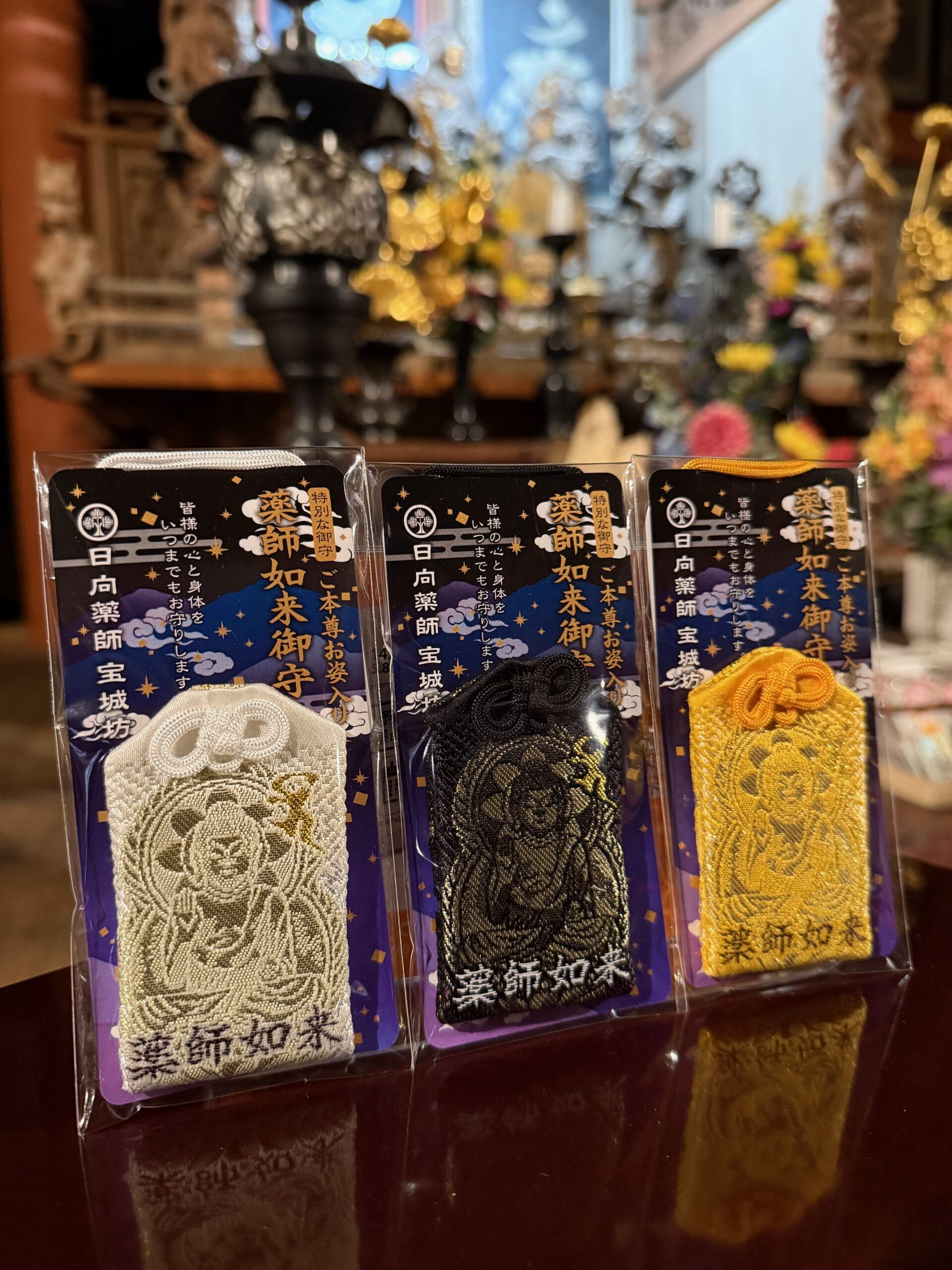 色は白、金、黒の三色です。ご本尊が皆様の心と身体をいつまでもお守りします。