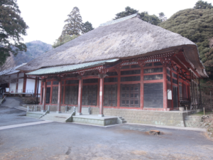 本堂は、県内唯一の七間堂(正面の柱間が七つ)、茅葺きの大規模な本堂として、国の重要文化財に指定されています。江戸時代の建立以来、本格的な修理をせず維持されてきましたが、主要な柱の虫害や屋根の軒の歪みなどの老朽化が進んでいることがわかり、平成22年から足掛け7年をかけて、大規模な改修工事を実施しました。工事は仮設の屋根を掛け、作業場所を確保することから始まりました。